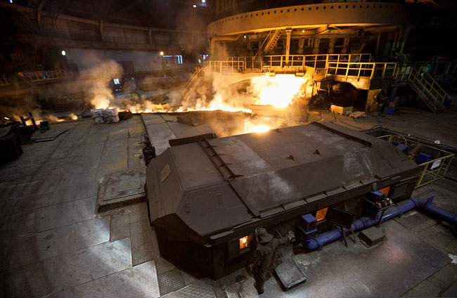 Выплавленный в доменной печи чугун сливается в огромные ковши и по железной дороге отправляется на следующий этап производства. В конвертерный цех. Здесь из него удаляется лишний углерод и он, наконец, превращается в такую важную и необходимую сталь.